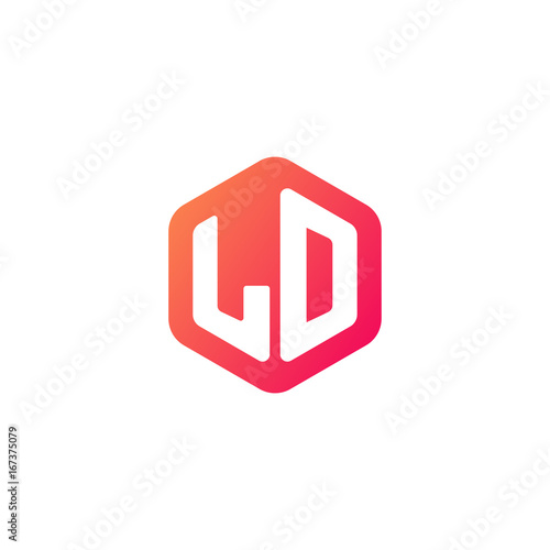 Initial letter ld, rounded hexagon logo, gradient red orange colors