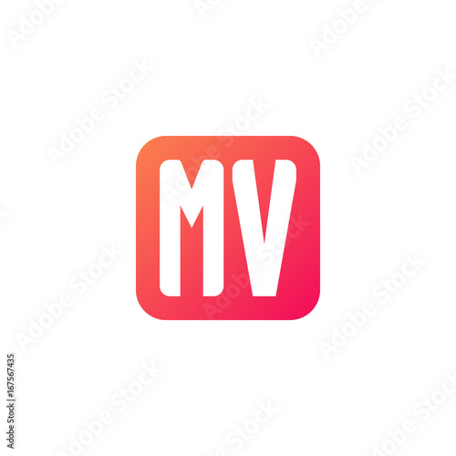 Initial letter MV, rounded letter square logo, modern gradient red color
