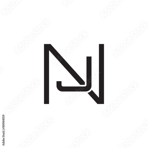 Initial letter N and J, NJ, JN, overlapping J inside N, line art logo, black monogram color