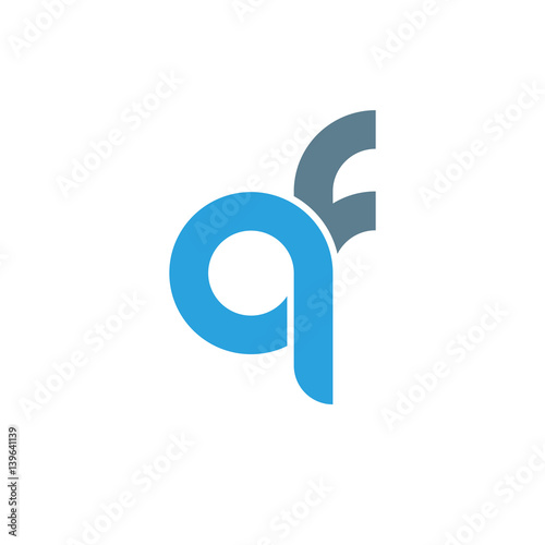 Initial letter qf modern linked circle round lowercase logo blue gray