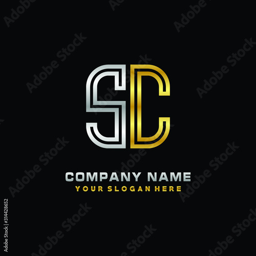 initial letter SC logo Abstract vector minimalist. letter logo gold and silver color