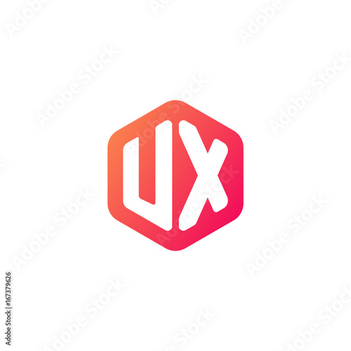 Initial letter ux, rounded hexagon logo, gradient red orange colors