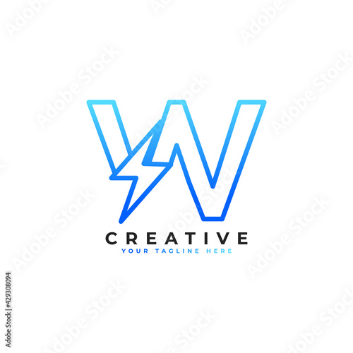 Initial Letter W Logo With Lighting Thunder Bolt in Linear Style. Alphabet Suitable for Fast, Power, Flash, Electric, Identity, Moving and Speed.