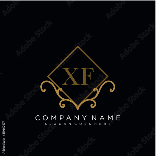 Initial letter XF logo luxury vector mark, gold color elegant classical