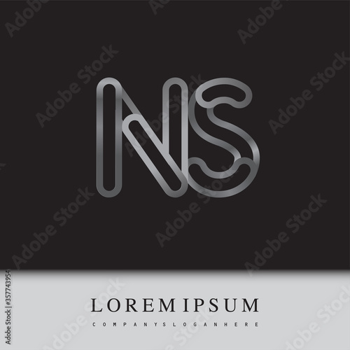 initial logo letter NS, linked outline silver colored, rounded logotype