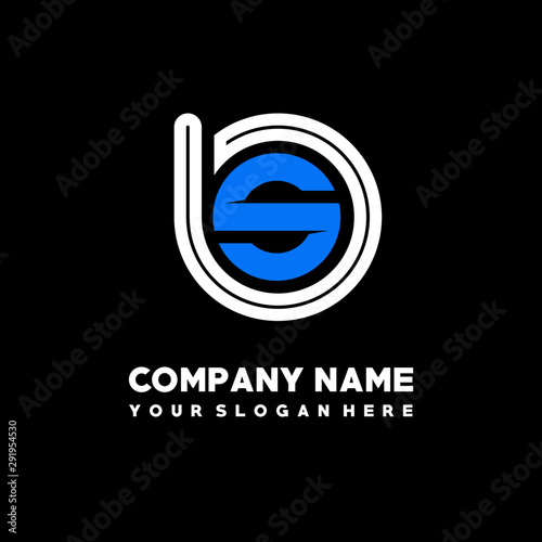 Initial lowercase letter BS, linked circle outline logo elegant, color white, blue on black background