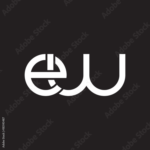 Initial lowercase letter ew, overlapping circle interlock logo, white color on black background