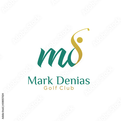initial MD golf with golfer icon vector logo design, letter MD concept