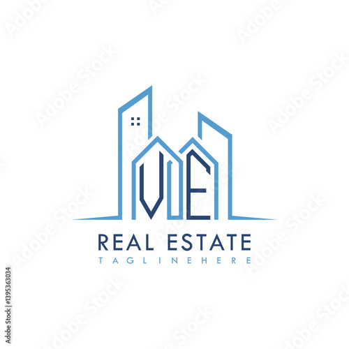 initial monogram logo for real estate With building and home shape creative design.