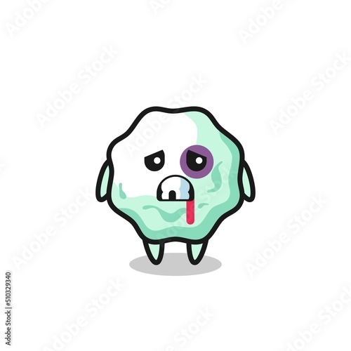 injured chewing gum character with a bruised face