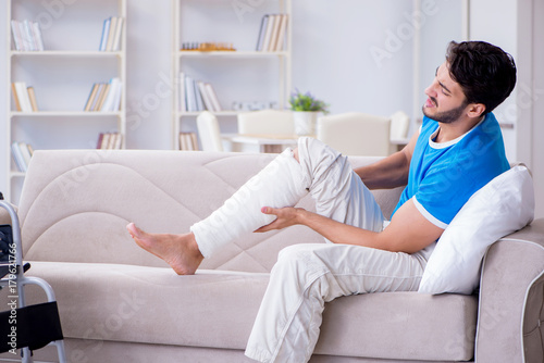 Injured young man recovering at home