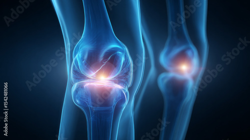injury to the meniscus in the knee. knee joint structure. Transparent blue joint that looks realistic and glows on a dark background. healthcare design vector drawing similar to an X-ray image.