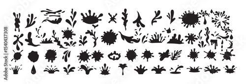 Ink and Liquid Splash Vector Set. Black Paint, Drip, and Splatter Icons Collection. Victor illustration eps 10