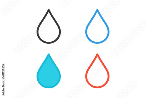 Ink Icon Grid Outline Set of Ink Colors and Gradients with Black, Blue, Turquoise, and Red Ink Droplets Vector Illustration on Transparent Background