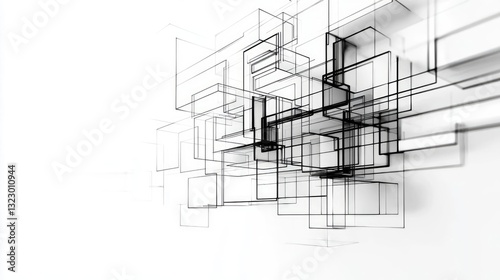 Ink illustration abstract background concept. Abstract design featuring black and white geometric shapes and lines on a clean background.