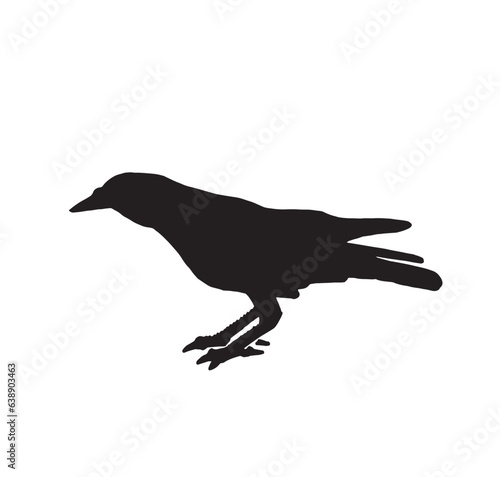 Ink pen vector silhouette of crow isolated on white background. Element for design,tattoo and printing