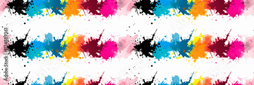 Ink splatter designs, random and artistic, black and white or colorful. Background, seamless pattern.