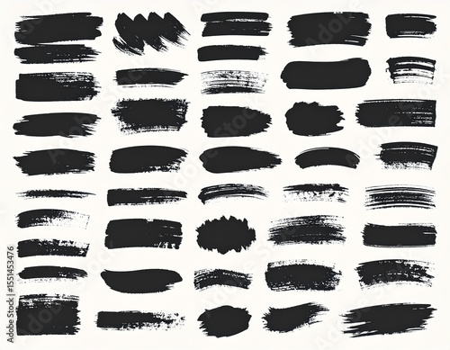 Ink Stroke Set. Variety of bold hand-drawn brush stroke elements with expressive texture and organic shapes.aesthetic, bold, brush, contour, detailed, expressive, flow, fluid, graphic, grunge, ink,