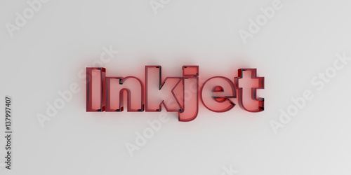 Inkjet - Red glass text on white background - 3D rendered royalty free stock image.