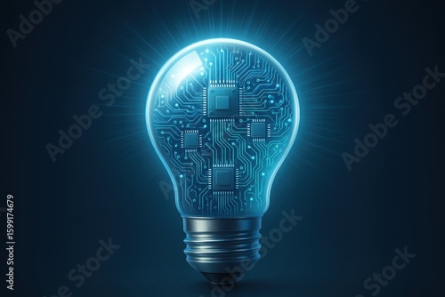 Innovation Light Bulb with Embedded Microchip and Tech Startup Concept Visualization