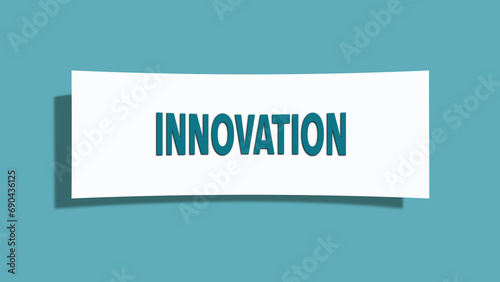 Innovation symbol. A card in light green with word Innovation. Isolated on white background.