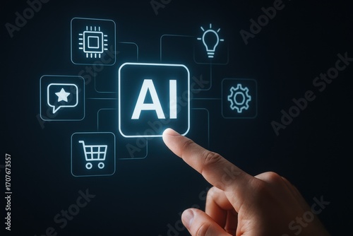 Innovative AI Technology Concept Touchscreen Interaction with Various Icons and Symbols