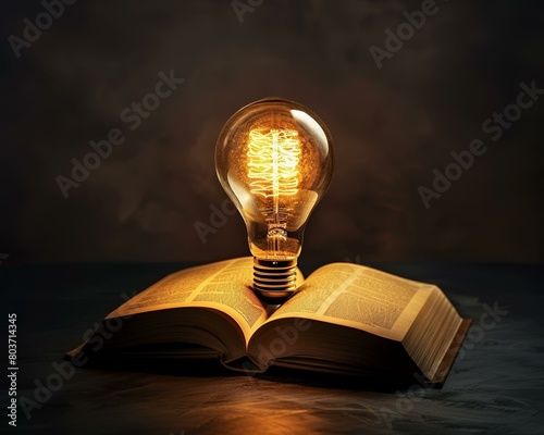 Innovative bulb lamp containing a book, inspiration glow, sleek on black screen wallpaper