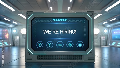 Innovative digital recruitment hiring event virtual space graphic design futuristic environment engaging viewpoint