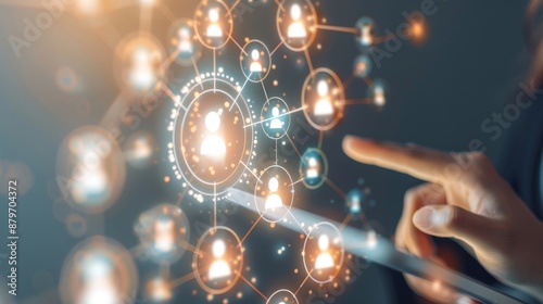 Innovative Digital Technology Concept with Hand Interacting with Advanced Virtual Interface