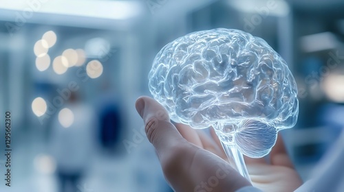 Innovative representation of a glowing brain in a person's hand symbolizing advanced technology and neuroscience progress : Generative AI