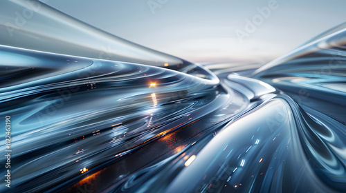 Innovative Transportation: Digital Art of Glossy Waves Symbolizing Dynamic Technology
