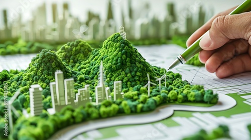 Innovative Urban Planning Concept Featuring Sustainable Green Landscapes and Eco-Friendly City Development