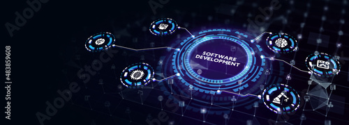 Inscription Software Development on the virtual display. Business, modern technology, internet and networking concept. 3d illustration