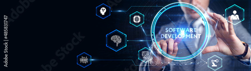 Inscription Software Development on the virtual display. Business, modern technology, internet and networking concept.