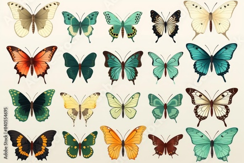 Insect mimicry adaptations flat design, top view, entomology theme, cartoon drawing, colored pastel