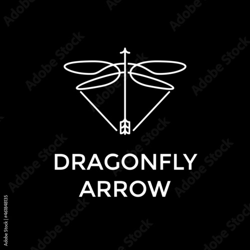 Insect of Dragonfly line art with Archery Arrow Mono line style logo design