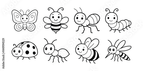 Insects Bee, Butterfly, Ladybug, Ant Outline for Kids Coloring Page