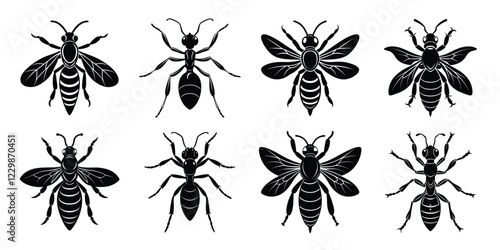 Insects silhouettes set. Vector illustrations poisonous insects isolated on white background