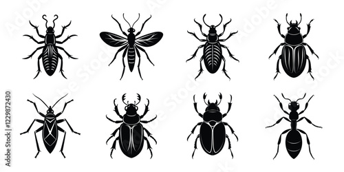 Insects silhouettes set. Vector illustrations poisonous insects isolated on white background