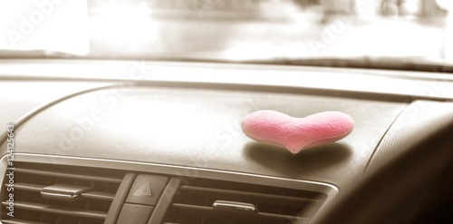 Inside car with Pink heart and filter sepia light