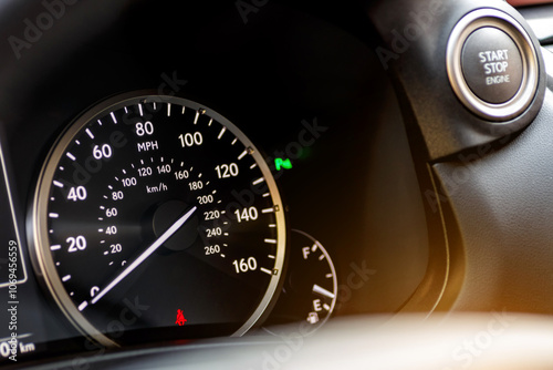 Inside the car.Speedometer and tachometer of the car.Dashboard, inner workings of a car.