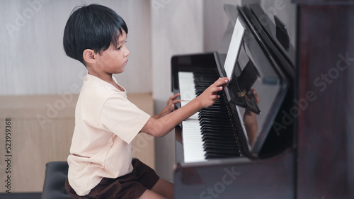 Inside the music room, children sit and play music in the room.Practice of learning musical instruments.Enjoy playing and having fun.