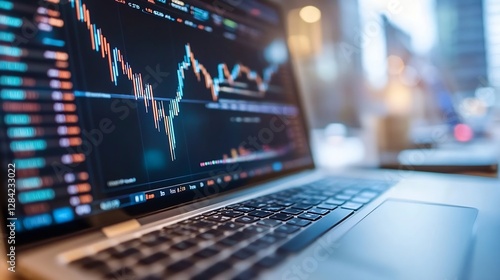 Insightful financial data displayed on a laptop screen depicting stock market trends : Generative AI
