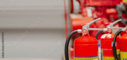 Inspection Fire extinguisher and fire hose,Ready to use in the event of a fire.Safety first concept.