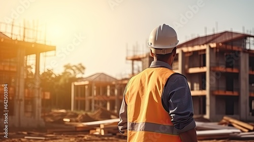 inspector or engineer is inspecting construction and quality assurance new house using a checklist. Engineers or architects or contactor work to build the house before handing, generate by AI