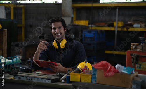 Inspector Worker factory man concept. Inspection technician, factory engineer, inspection of the machine condition in the factory. Inspection by technicians, industrial business, production machinery
