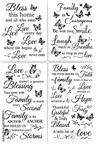 Inspirational Home and Family Quotes – Decorative Script Typography with Love and Blessings Theme