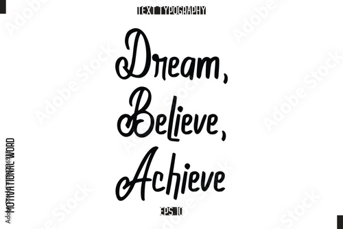 Inspirational Saying Cursive Modern Calligraphy Text For Prints Dream, Believe, Achieve