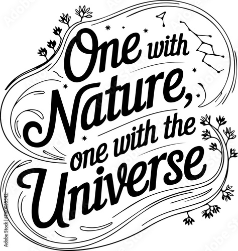 Inspirational T-Shirt Design: Nature and Universe Connection in Monochrome