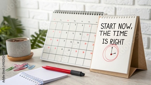 Inspiring Reminder on Desk with Calendar and Stationery for Motivation
